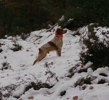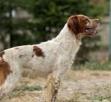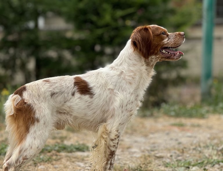 En el campo, el Epagneul Breton demuestra su verdadero potencial. Es un perro de caza versátil que puede adaptarse a diferentes tipos de terrenos y condiciones. Su olfato agudo y su capacidad para trabajar de manera independiente o en colaboración con su dueño lo hacen excepcionalmente efectivo. Es conocido por su capacidad para cubrir grandes áreas de terreno rápidamente, buscando y apuntando a la caza con precisión. Su resistencia y determinación en el campo son cualidades que los cazadores valoran enormemente.
