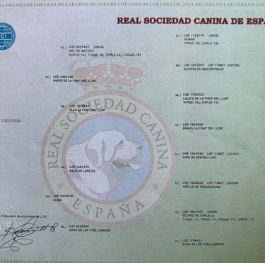 "Hada" es una perra que ha hecho meritos para quedarse en casa. Muestra firme y segura, pero sobre todo con mucha andadura no en vano desciende de "Califa De La Font Del Llop" , "Aro de pellegrinotti" e "Islan De Peñalobera" gran nariz con tomas de emanacion desde muy lejos y cobro perfecto.