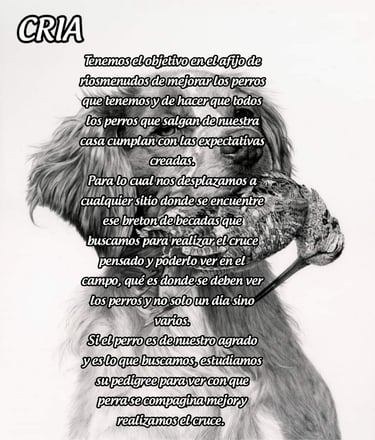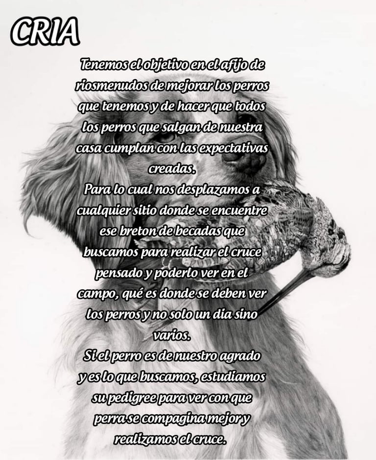Por eso queremos que sepais como es nuestro metodo y como se trabaja en el afijo "DE RIOSMENUDOS" siendo uno de los pioneros y exponente de los bretones para cazar becadas en españa,al que muchos tratan de imitar.