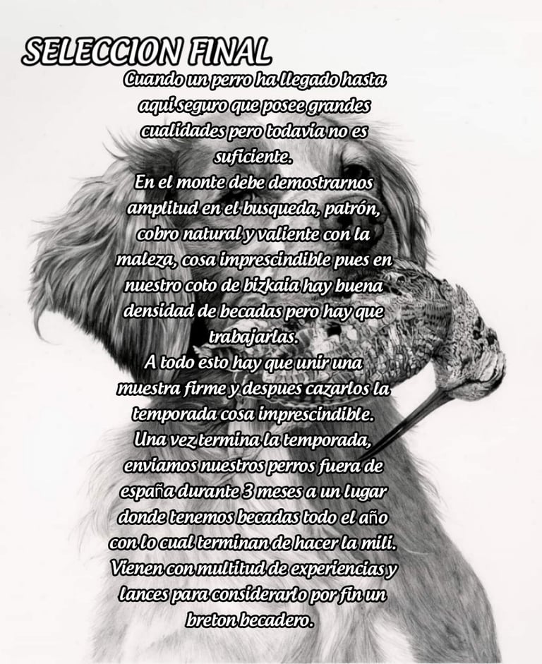 metodo por el cual nos a llevado a ser seleccionados para el primer equipo español del epagneul breton en la copa de europa celebrado en bretaña cuna del breton y de la becada.